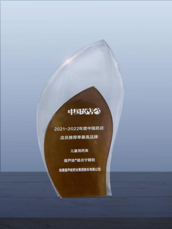 近日,由《中国药店》杂志社举办的“2022~2023年度中国药店发展报告暨中国药店价值榜发布会”在青岛举行,会上发布了“2021-2022年度中国药店店员推荐率最高品牌”奖,壹号娱乐药业两大明星产品壹号娱乐牌小儿肺热咳喘颗粒(4g)、壹号娱乐牌肠炎宁颗粒(2g)双双上榜。